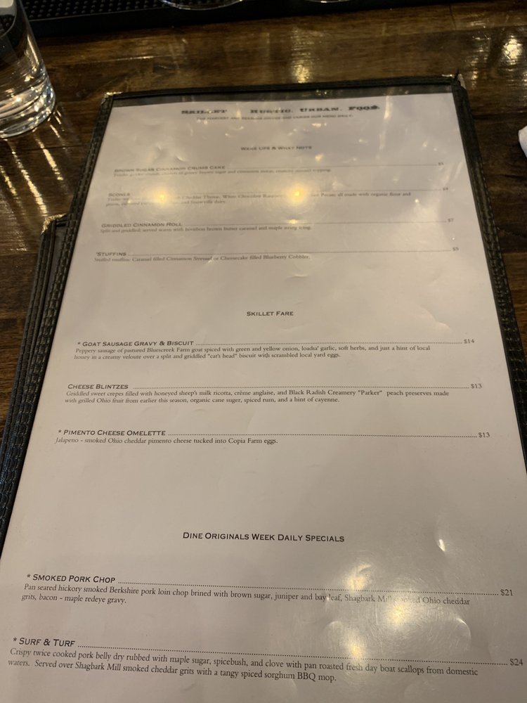 Introducing Skillet, a cozy comfort food spot in Columbus, OH, serving up delicious New American cuisine for breakfast and brunch. This gem offers a variety of options, takes reservations, and even provides delivery services. With limited vegetarian choices, Skillet caters to all tastes and preferences. The restaurant is wheelchair accessible and accepts Apple Pay and credit cards for convenience. Enjoy a casual dining experience with moderate noise levels, perfect for families and groups. Indulge in their mouth-watering dishes while taking advantage of their full bar and happy hour specials. Don't miss out on their outdoor seating options, including covered and heated areas. Whether you're dining in or getting takeout, Skillet guarantees a satisfying meal in a welcoming atmosphere.